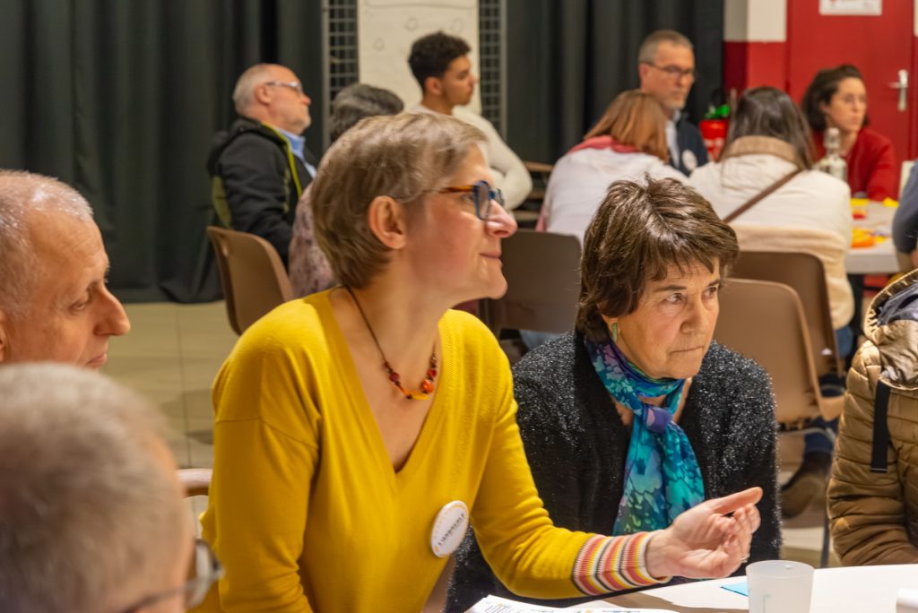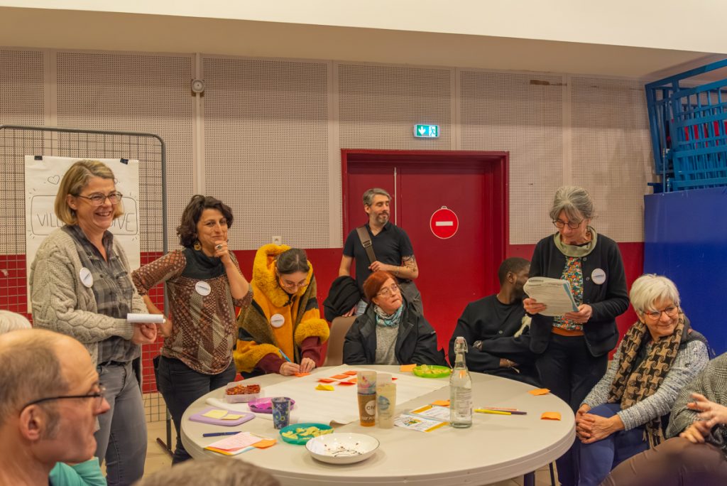 On ne va pas vous mentir, on était un peu stressés, mercredi 21 janvier, à 19h, salle Claude Terrasse… L’après-midi avait été consacré à installer des chaises (mais combien ?), des tables, des post-its. À vérifier le fonctionnement des micros, de la sono. À orienter deux projecteurs pour éviter l’éblouissement. À remanier la mise en page de la présentation, à répéter et chronométrer les prises de parole. À confectionner cakes, quiches, à compter les éco-cups et à mettre les boissons dans la chambre froide. À rappeler les jeunes baby-sitters pour s’assurer de leur présence. À se demander si on avait choisi la bonne tenue, les bonnes phrases, le bon déroulé…